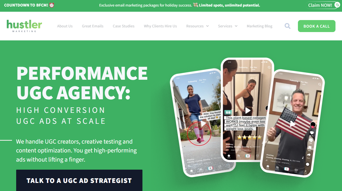 Hustler Marketing approaches UGC like a performance engine built for scale. Their team runs over 100 creative tests every month to uncover the strongest hooks, formats, and creators, turning content into a repeatable system for ad performance.
