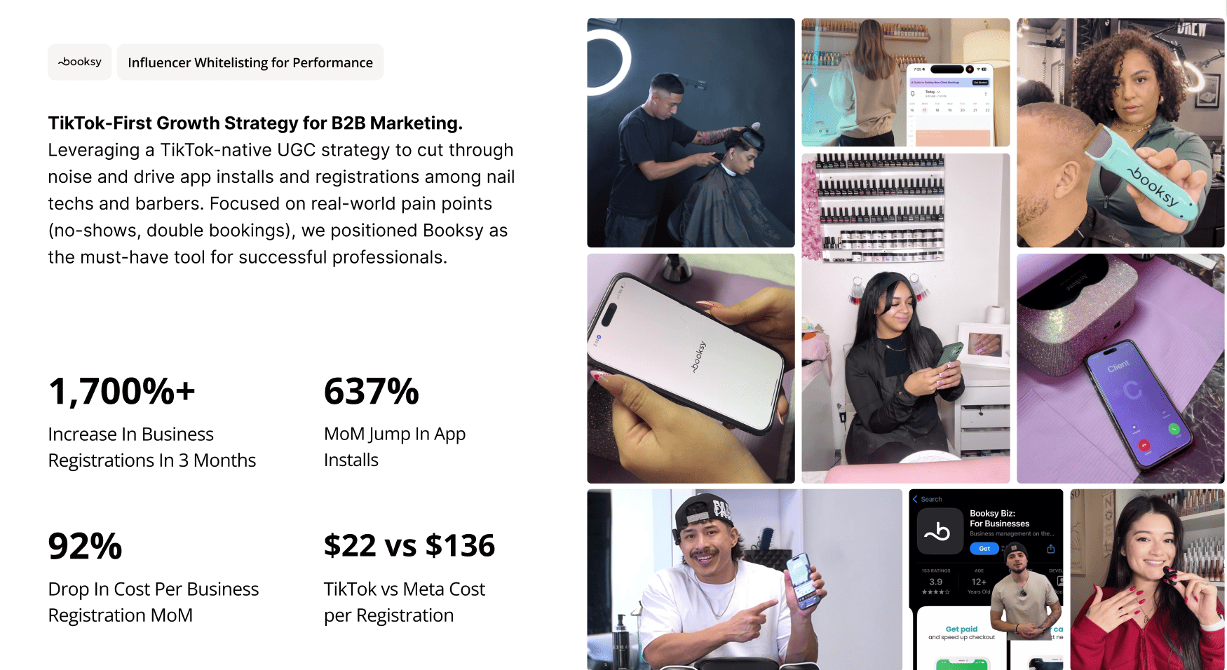 Reason to work with inBeat: You scale faster with UGC that cuts acquisition costs by up to 92%, as proven in Booksy’s 1,700% growth case.