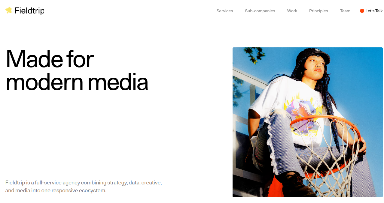 - Fieldtrip: A full-service agency connecting creative, media, and analytics into one growth engine. Fieldtrip delivers scale through data-driven UGC and performance media, building 750+ content assets and achieving up to 60% lower CPA and 150% higher customer value for clients.