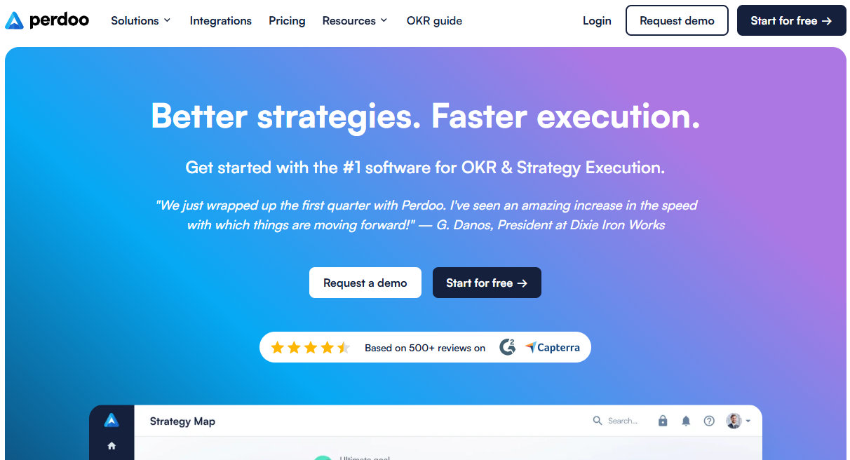 Perdoo is an OKR software that offers a user-friendly interface, unifying people, goals, and strategy. Perdoo is a great tool for scaling SaaS teams that need access to real-time communication, alignment between OKRs and KPIs, and advanced analytics. The visual and strategic features offered by Perdoo can ensure stronger organizational alignment, making it perfect for growing SaaS teams.