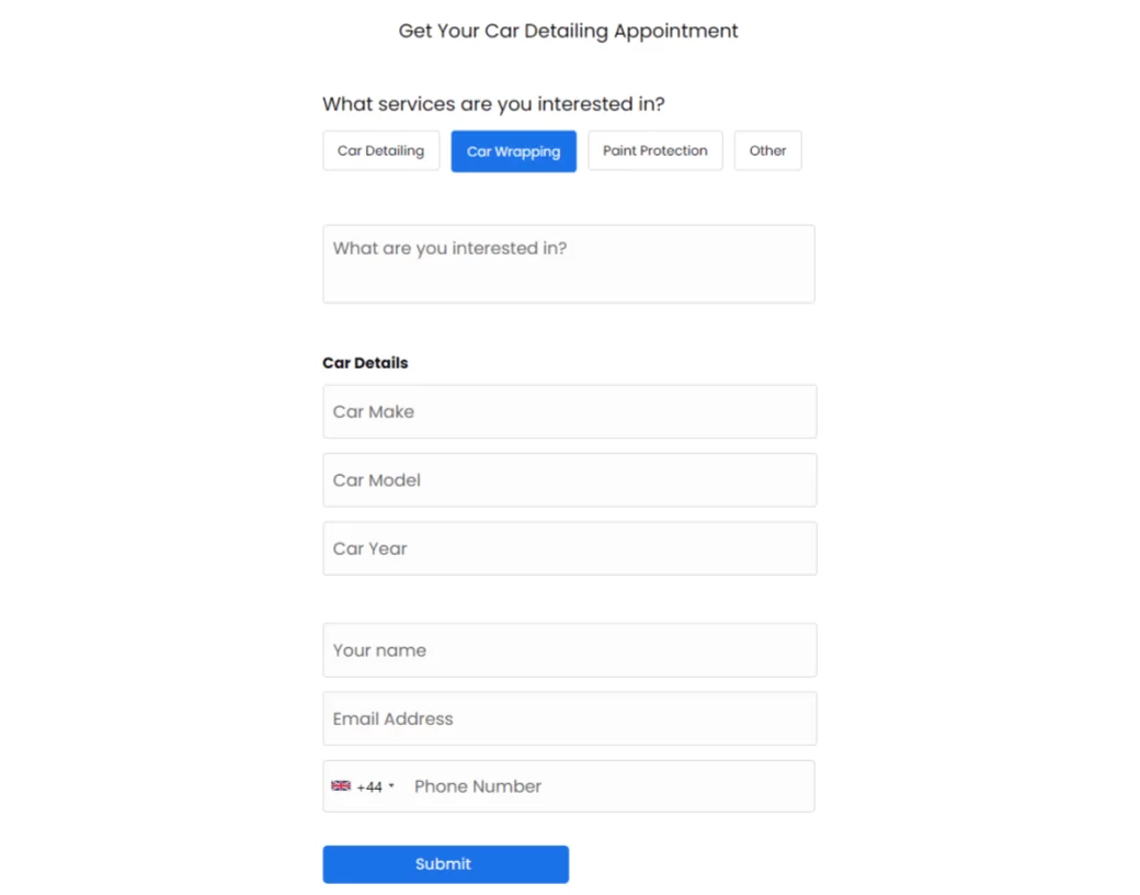 Car Detailing Lead Form