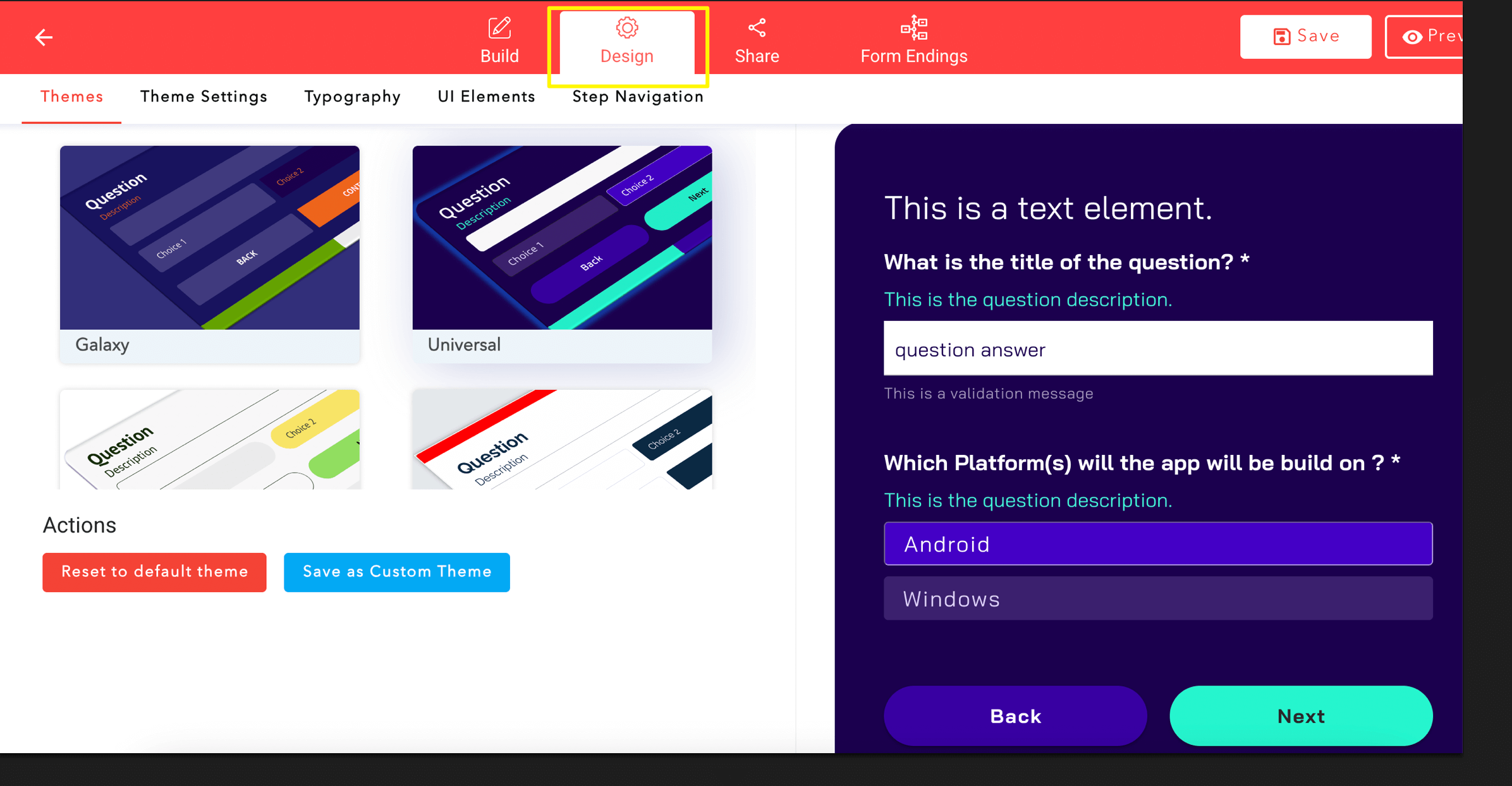 If you change the theme, the colors will automatically change and your form design is now updated in the style of theme that you selected.