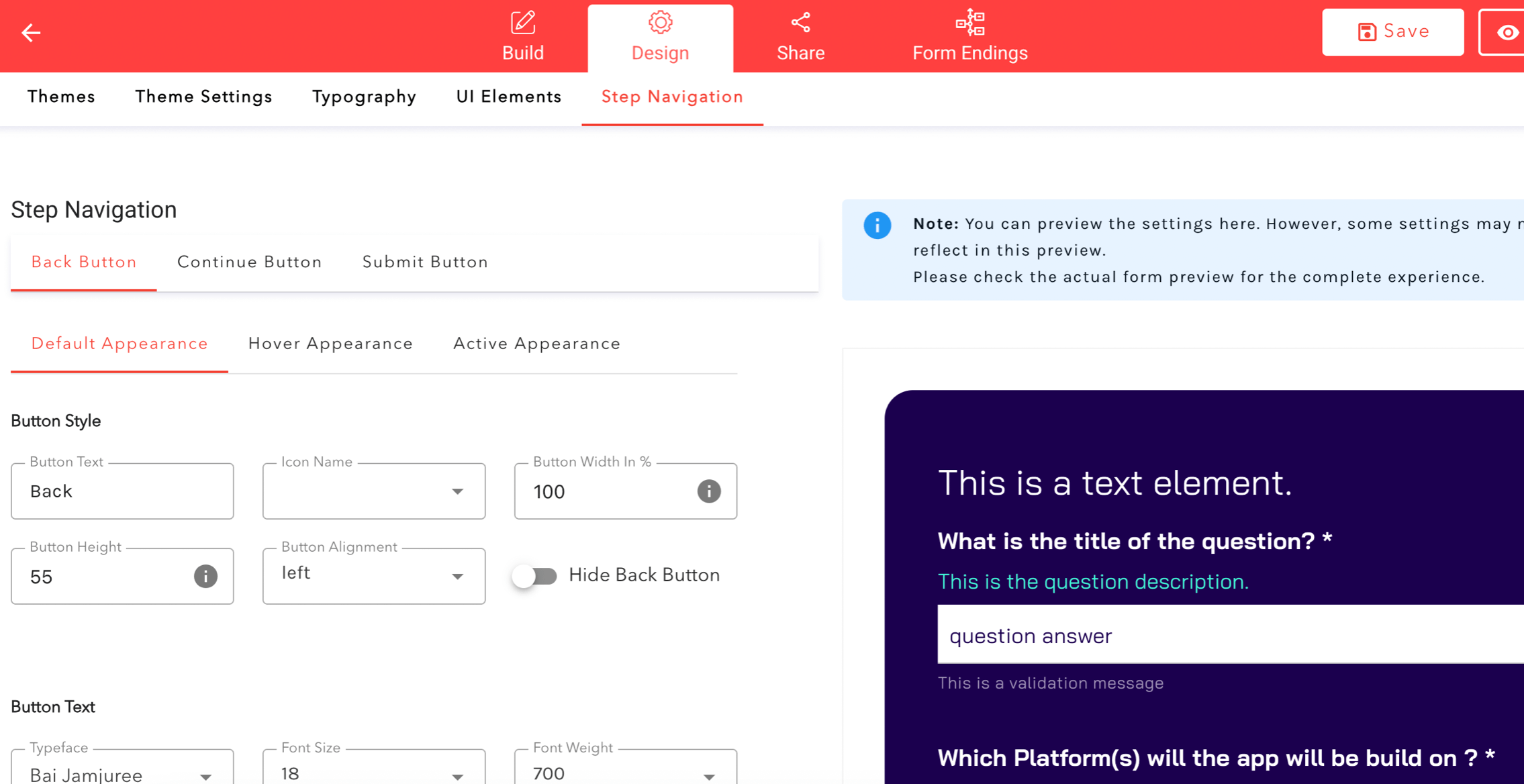 This guide will help you change the design, button text, fonts, alignment and various different sizing options of the continue and submit buttons in you form.