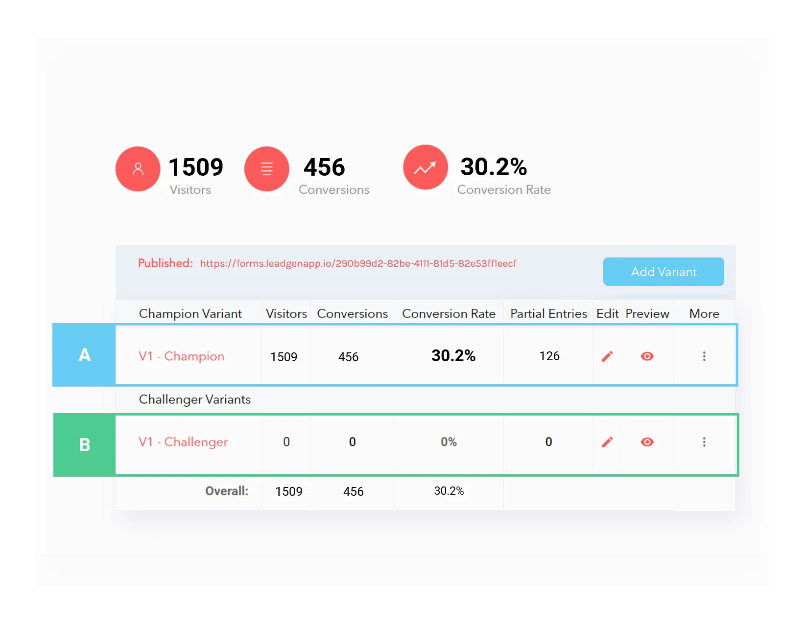 Run A/B tests to compare different form variations on a single landing page.